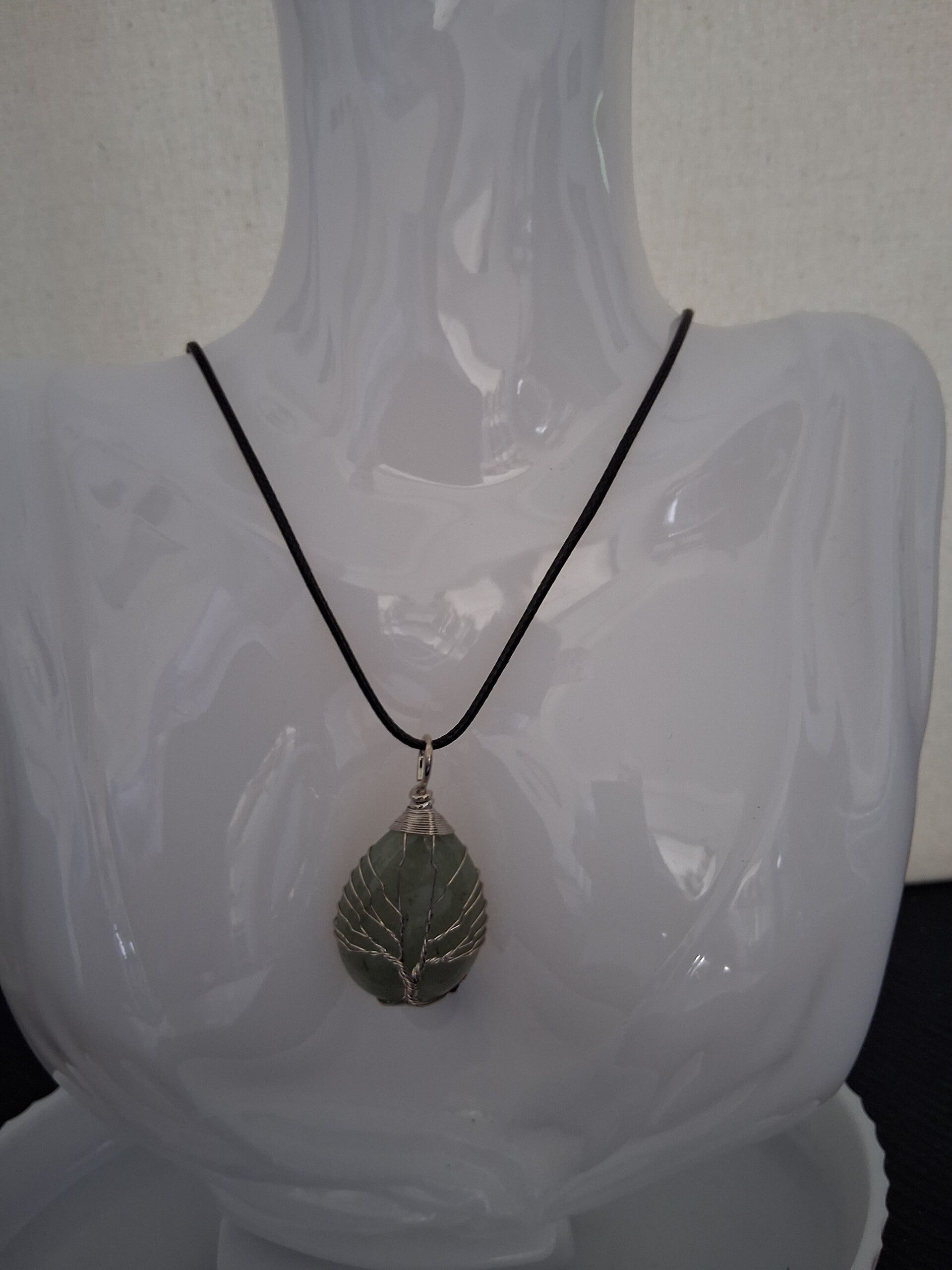 Pendentif Goutte minérale cerclée fer style arbre de vie