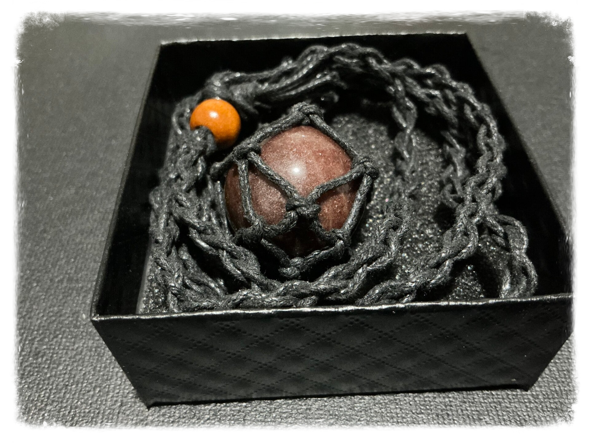 Bille minérale enchâssée dans cage d’un cordon en fibre de polyester tressée