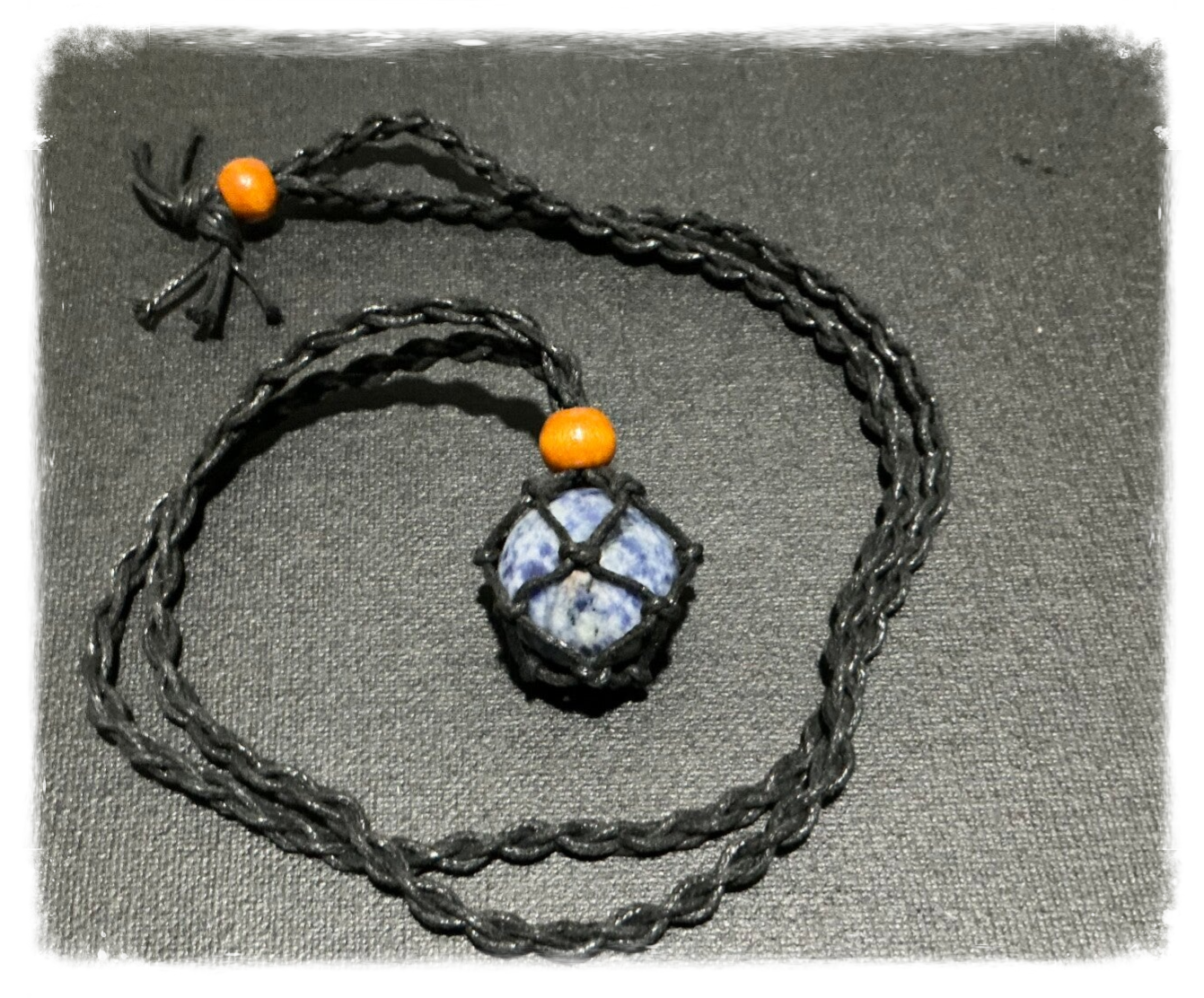 Bille minérale enchâssée dans cage d’un cordon en fibre de polyester tressée
