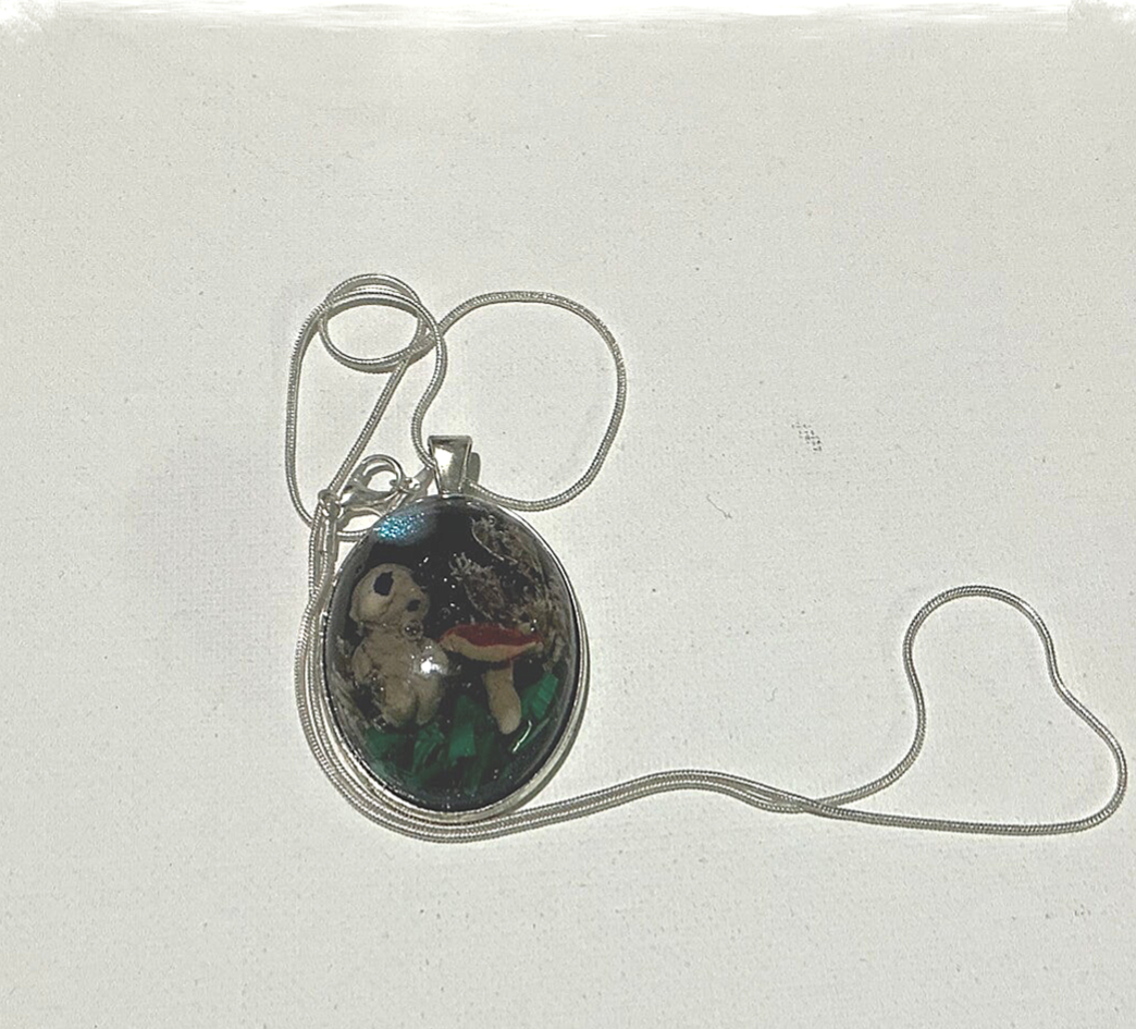 Pendentif en résine saynète "Esprit de la forêt " la lune s'illumine à la lumière