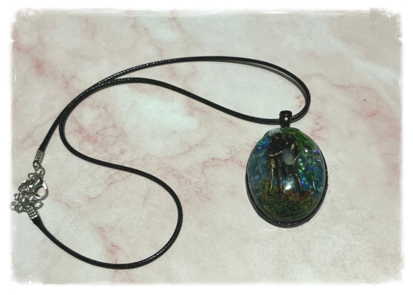 Pendentif en résine saynète "couple amoureux s'échangeant des mots doux "