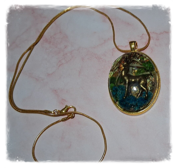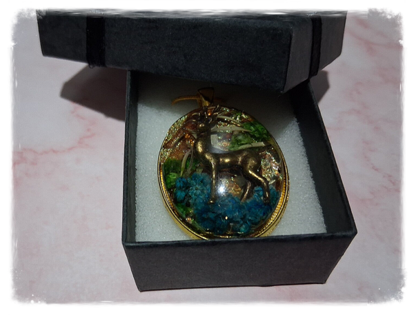 Pendentif en résine saynète "Cerf batifolant dans la forêt " la lune s'illumine à la lumière