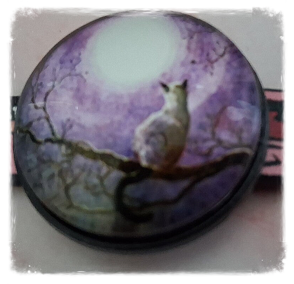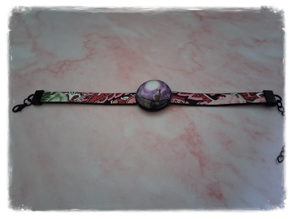 Bracelet doublet cuir avec cabochon Chat au clair de lune sur Fond PARME .