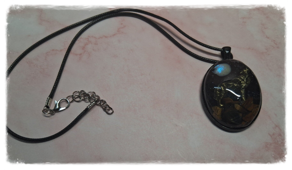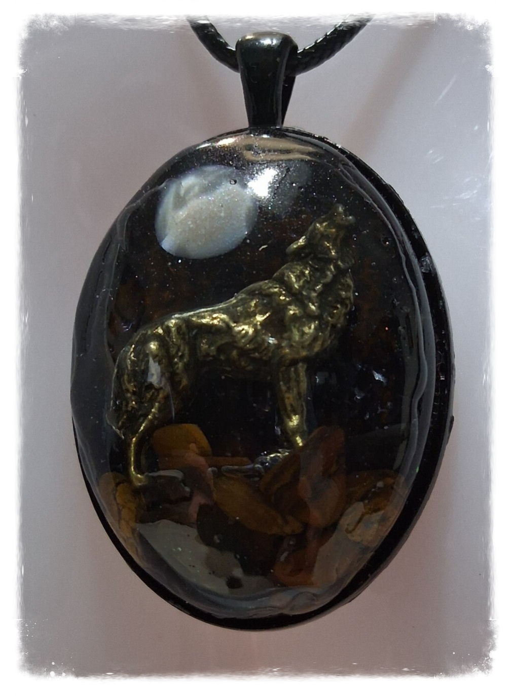 Pendentif en résine saynète "loup hurlant à la lune" .